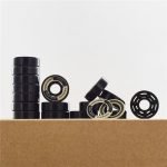 O rolamento de cerâmica negra é projetado para competição de velocidade profissional, possuindo 7 bolas de cerâmica Si3N4 trazem estrutura estável, a gaiola fortalecida e nunca racha, a superfície de óxido preto é fria e nunca enferruja, possui tampas duplas à prova de poeira e água e o melhor, as esferas são auto-lubrificadas, não precisa de óleo.